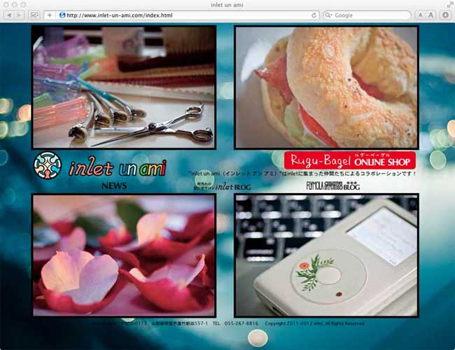 inlet un amiを構成する4つの主なサイトにわかりやすくアクセスできるように配慮しました。 デザインはモダンでクールなイメージで。インパクトを重視しています。写真・WEBデザイン・ロゴデザインなど全てを作成しました。
